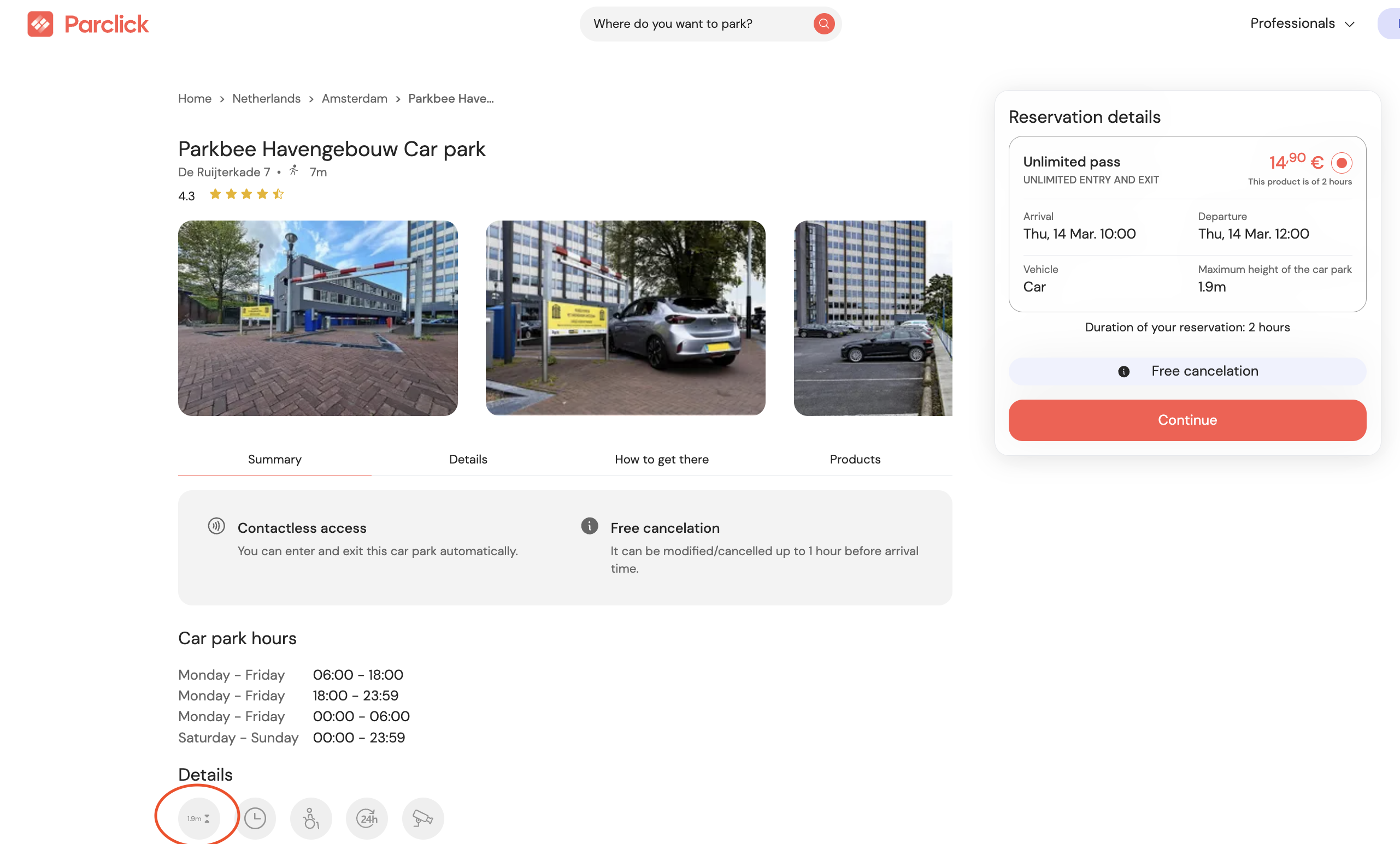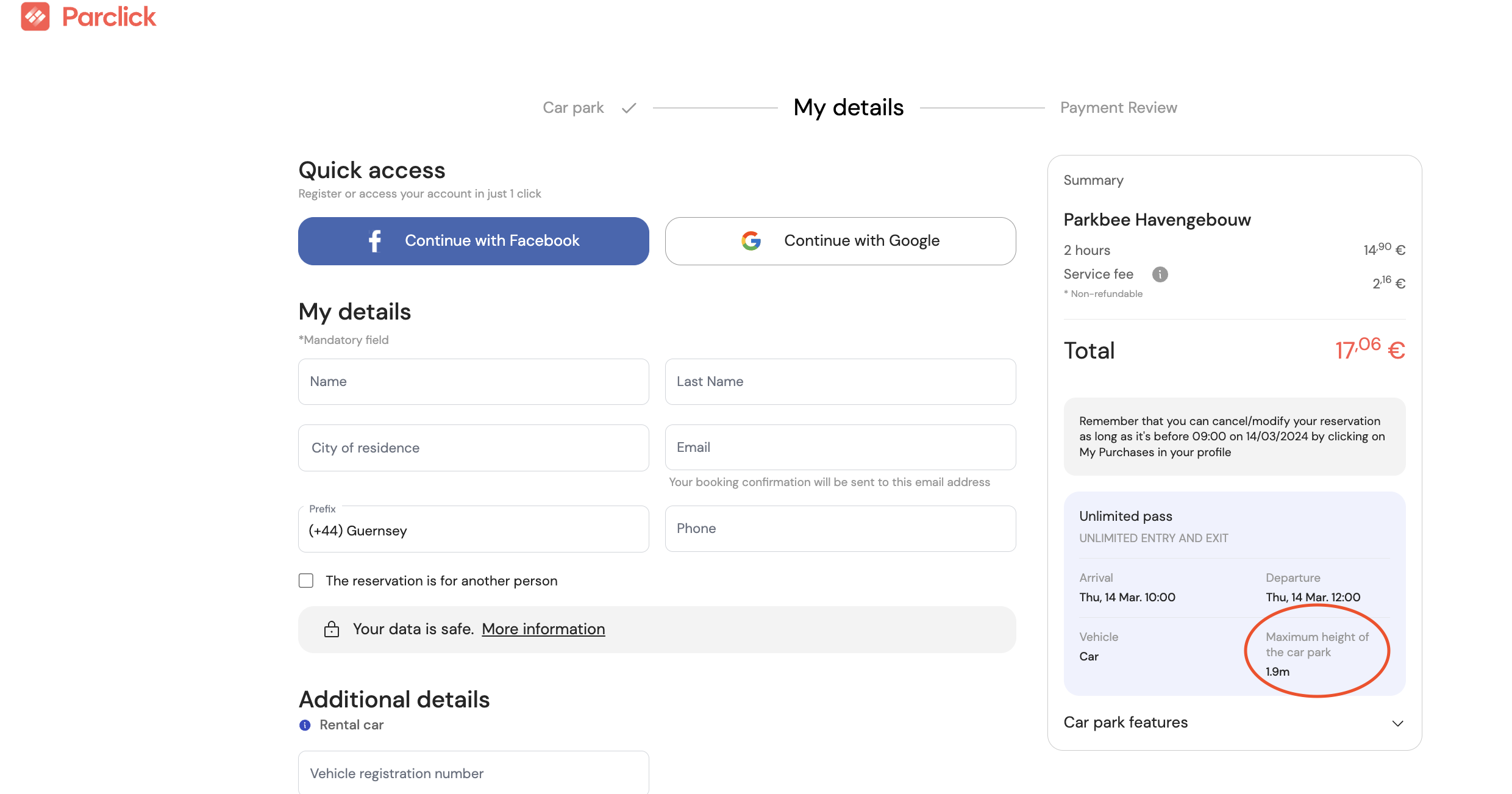 If you want to make a reservation with Parclick but you want to make sure that your vehicle complies with the dimensions of the spaces, you can consult this information at any time on our website and even in the purchase confirmation (in the booking voucher that we send you in the attached file).