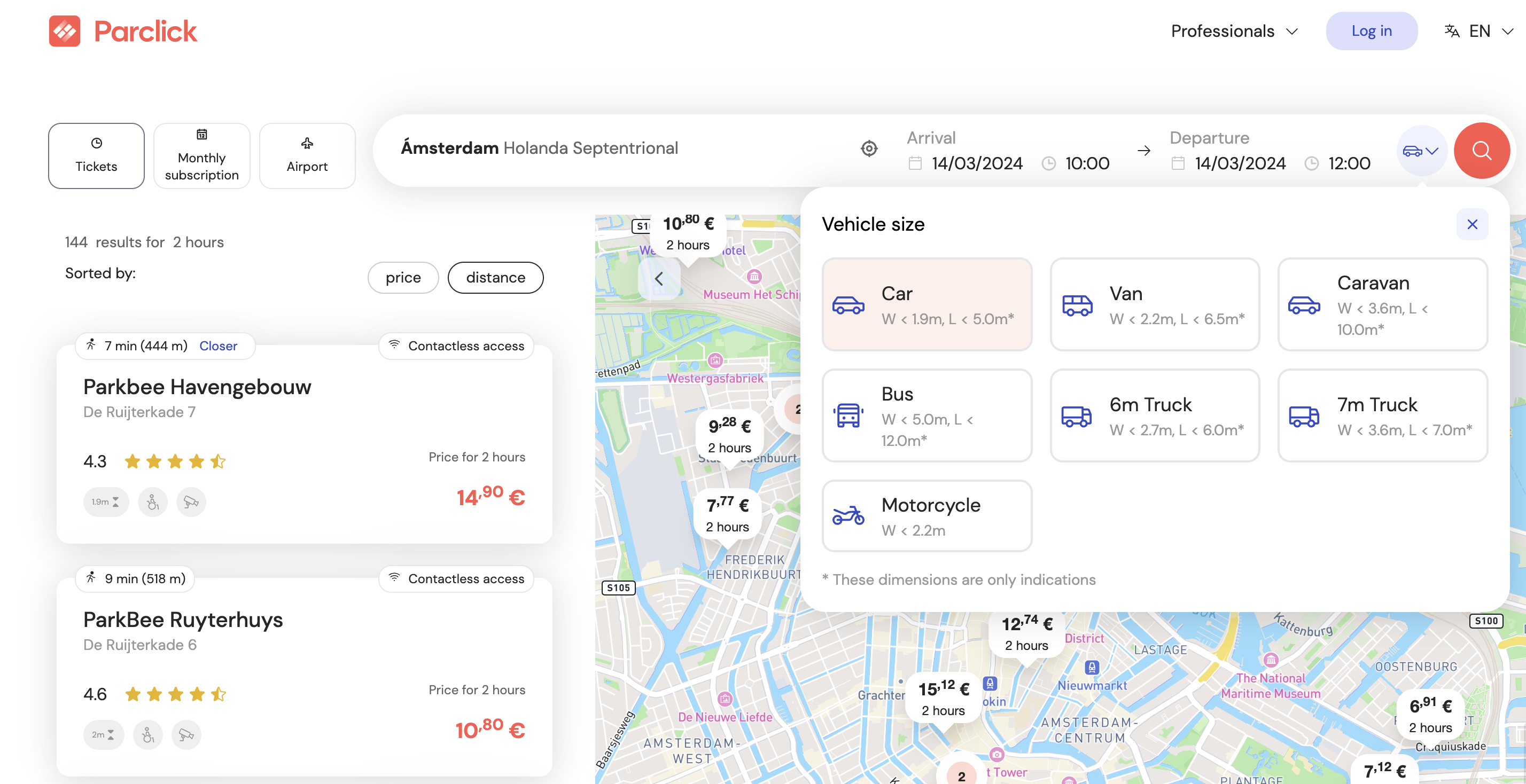 For greater guarantee, each car park is accompanied by the maximum height allowed in its facilities. You can find this information in the list of nearby car parks (on the left of the map) and in the information sheet.